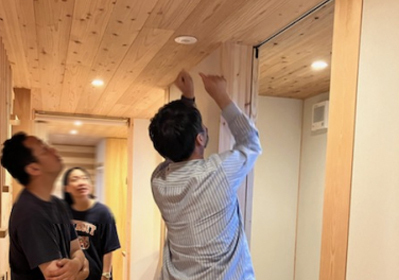 リビング、キッチン、寝室、洗面室・・・ 個性ある木材一本一本を吟味してパズルの様に空間へ組み合わせていきます。