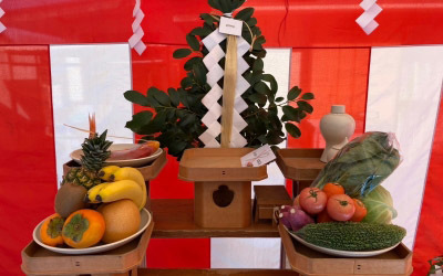 色とりどりの野菜や果物、立派な鯛が祭壇に並び準備万端です。