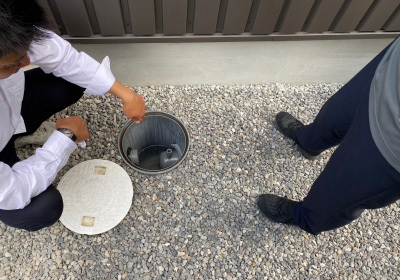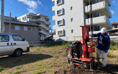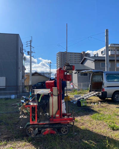 建物を建てる前に、地盤の性質や強度を計測する「地盤調査」です。