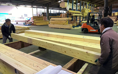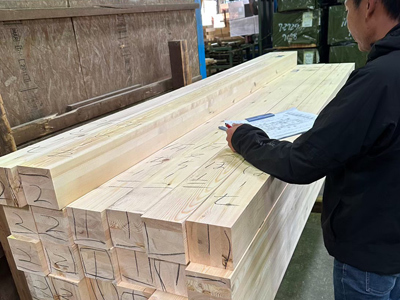 『番付』とは化粧部分(仕上がりとなる部分)の木材選定作業で フォレストでは柱・梁の見え方にも気を遣います。