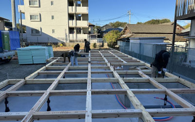 厚みのある断熱材を隙間なく埋めることで地面からの熱を遮断。