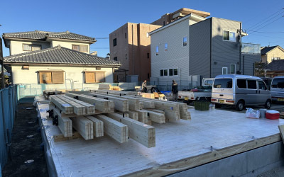工事は棟上げの準備へと進みます。