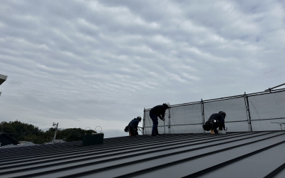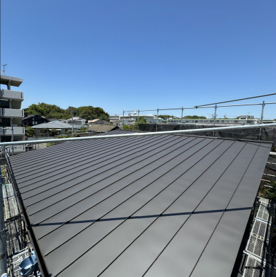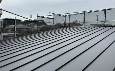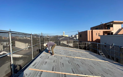 並行して屋根葺き作業も進みます。