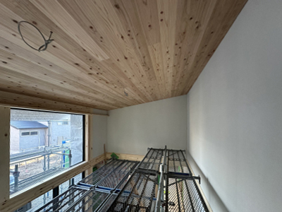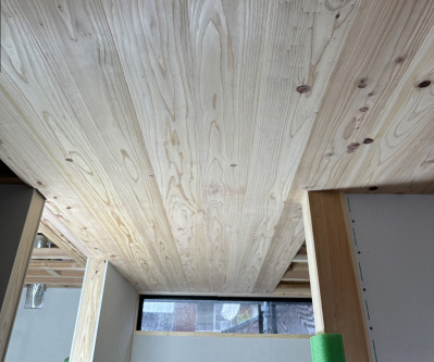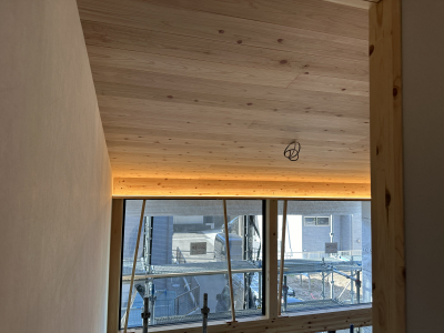 内部では天井の仕上げ作業が始まりました。