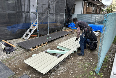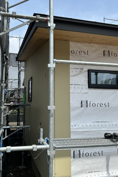 今回の外壁はガルバリウム鋼板とモルタル塗りのハイブリッド仕上げ。