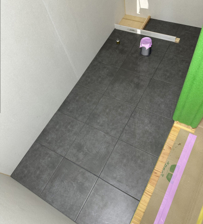 マットグレーのタイルに濃い目の目地をチョイスしました。