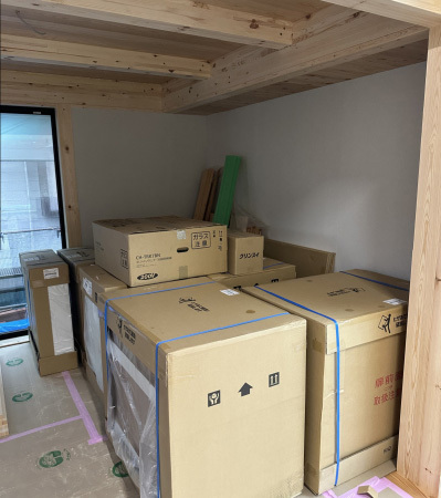 キッチンも搬入を済ませ組み立てを待ちます。