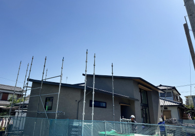 後日、外部の足場も組まれ 上棟の準備が全て完了です。