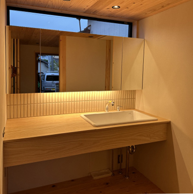 洗面台はシンプル且つ、実用性も兼ねています。