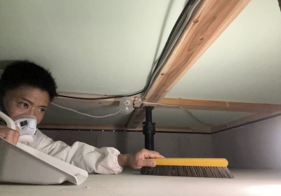 床下まで...現場の指揮を執ったKさん自ら床下に潜ること数時間。