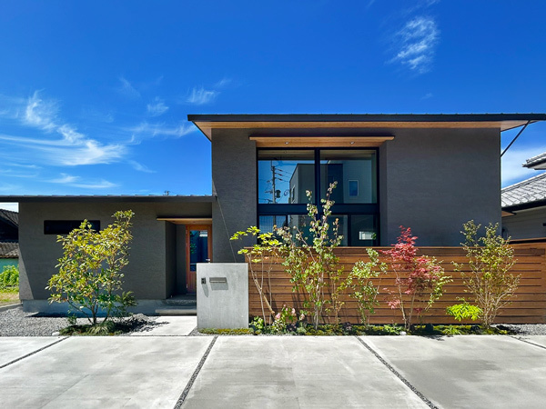 スクエアな建物形状にクールグレーがとてもスタイリッシュに決まりました。