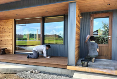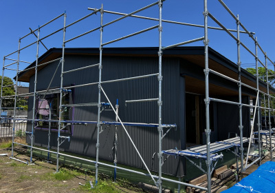 外壁張りを終えた草原のDOGRUN。