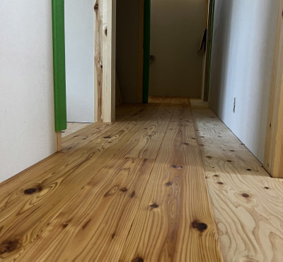 フォレストのお家の床には杉の無垢材を採用しており、 表面の浮造り加工や節・板目の模様にて表情も様々です。