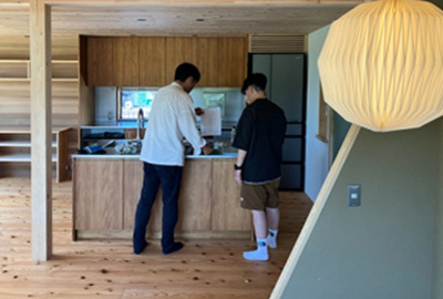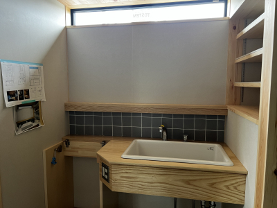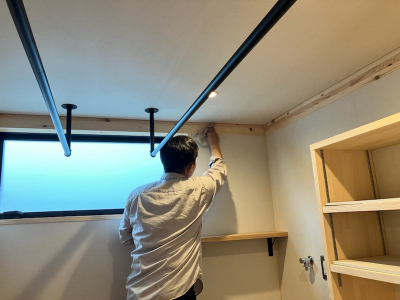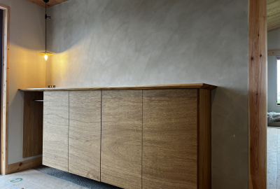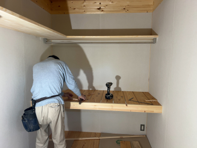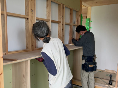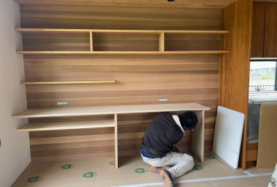 床張りを終えると、家具や収納棚の造作仕上げに進みます。