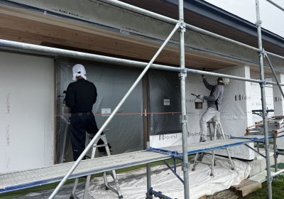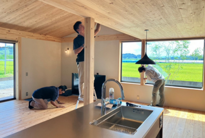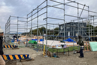 完成お披露目に向け仕上げに入った現場