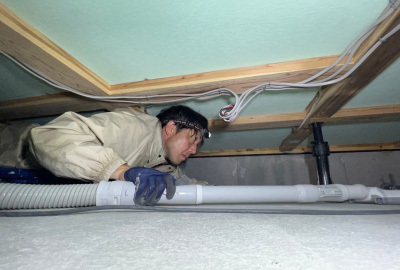 磨きの締めは現場をけん引してきたDさん自ら床下清掃へ!