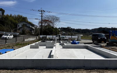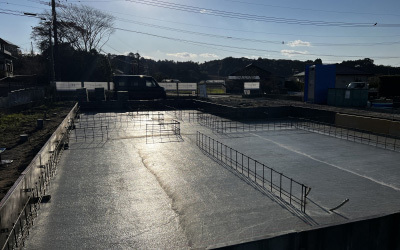 十分な乾燥期間をもって、白く強固な基礎の完成です!