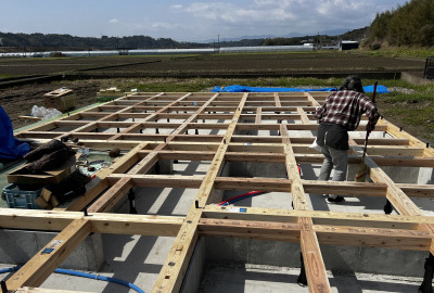 建て方に向けて準備工程「土台敷き」を行いました。