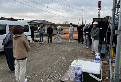 地鎮祭の後は、緊張から解放されたお施主様の笑顔を見ることで、素敵なお家を作らなければと気持ちが引き締まりました。