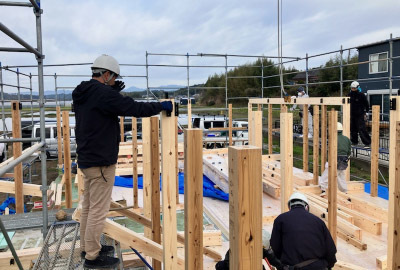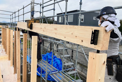 さらに匠たち同士の息もピッタリでスムーズに建て方工事が進みます。。