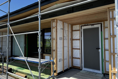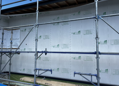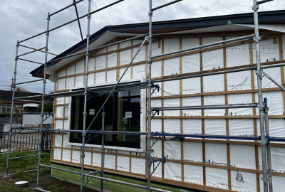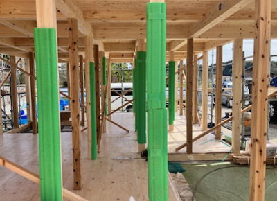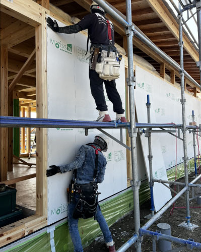 このあと、防湿シートで全体を包んで面材もしっかりと保護します。