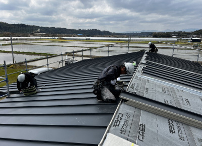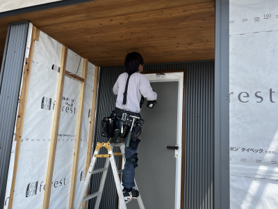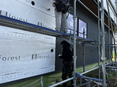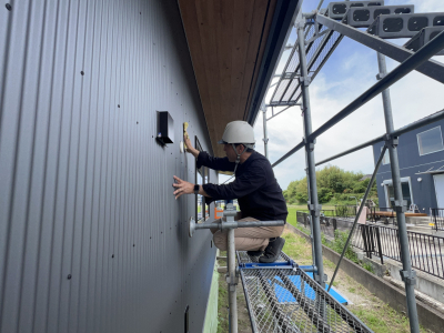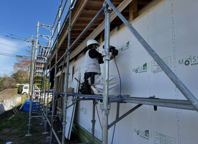 文字通り地震に耐える為の外装材を取付けていきます。