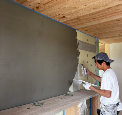 造作工事を終えると左官職人による塗り壁仕上げです。