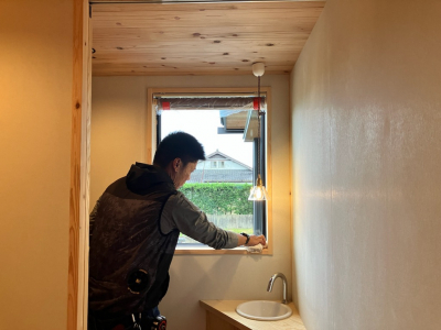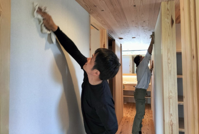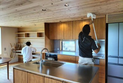 室内の壁や天井、こだわりの造作家具の磨き。
