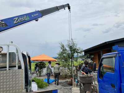 外構工事の仕上げである植栽工事スタートです。