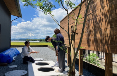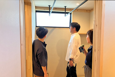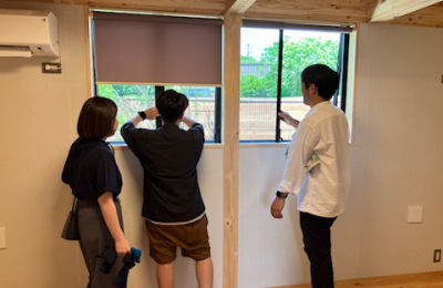 Dさん丁寧な解説を心掛けながらお施主様にも実践していただき暮らしのpointをご説明していきます。