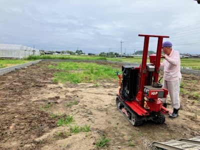 目には見えない建築地の深層箇所を、調査専用の機械をもちいて調査をおこないます。