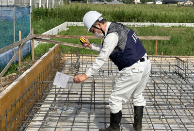 屋根・耐力面材の施工が完了すると第三者機関による躯体検査を行います。