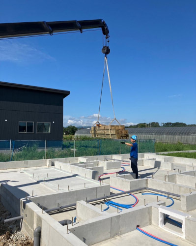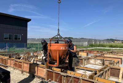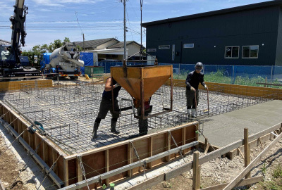 検査を終えると次にベースのコンクリートを打設。