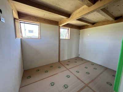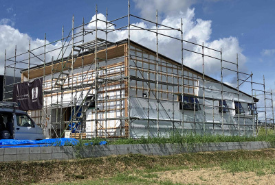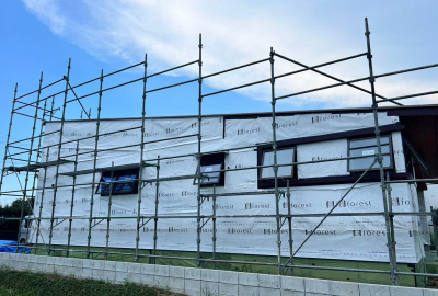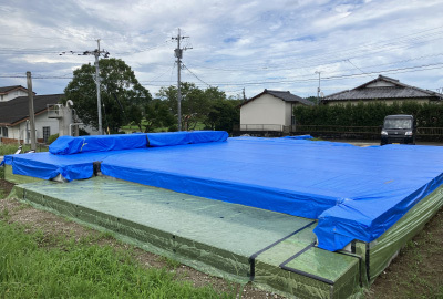 梅雨の雨や湿気から守るために養生もしっかりと施工。