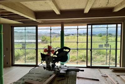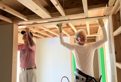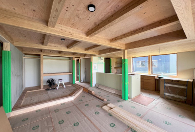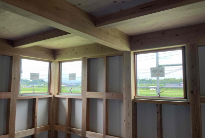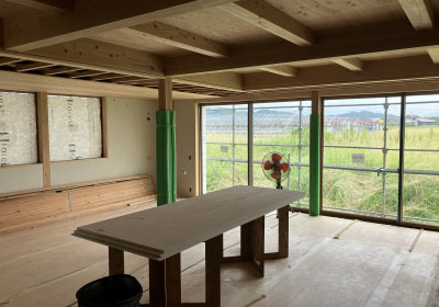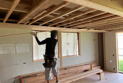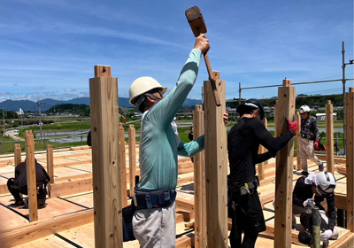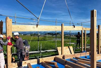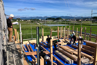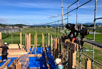 時折大工さんが打ち込む掛矢(木槌)と木材が奏でる音色は建て方ならでは。