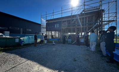ちょうど棟が上がったところでお昼となりました。