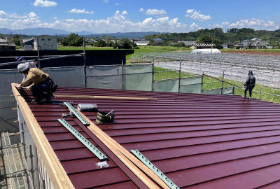 先日現場ではガルバリウム鋼板の屋根工事が完了しました。