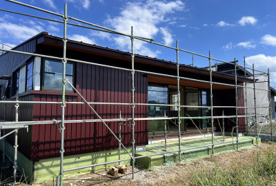 順調に進んでいく建て方、美しい片流れの屋根が姿を現しました。