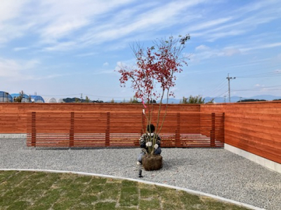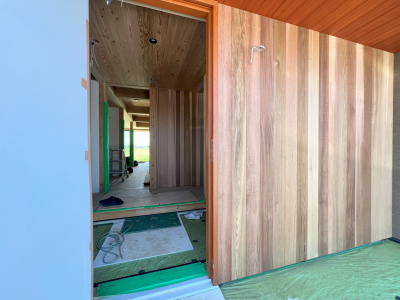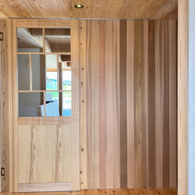お施主様拘りのレッドシダー壁がとても良い風合いです。