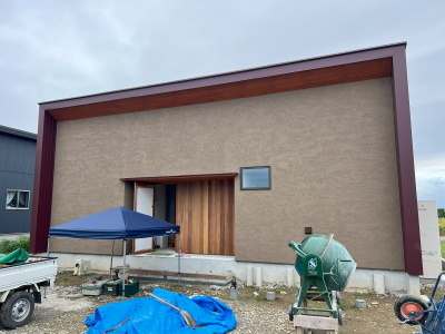 前面塗り壁の仕上げへを行いました。