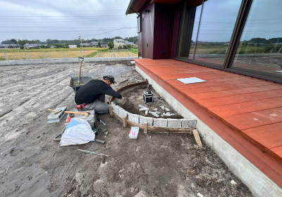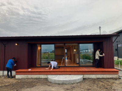外部ではウッドデッキも完成しいよいよ外構工事も始まります。