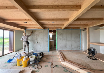お施主様一番の拘りポイントでもある塗り壁施工。