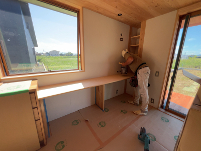 内部では棟梁による造作工事が快調に進みます。