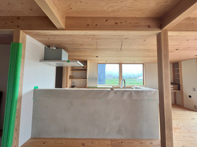 他にも、お施主様拘りのモルタル仕上げのキッチンや