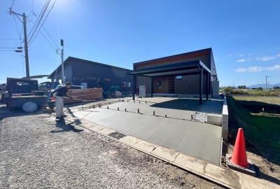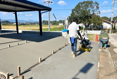 道路から繋がる駐車場にはコンクリートを打設します。