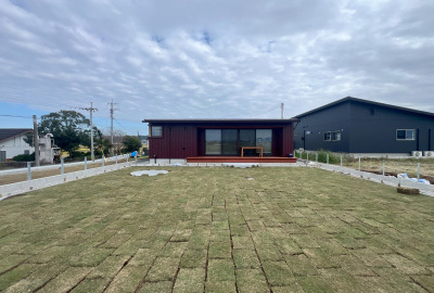 今回は平屋、片流れ屋根のため道路側より屋根の表情もより際立ちます。