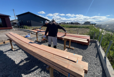 後日現場には土台に使用する材料が運ばれてきました。
