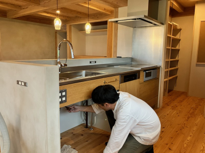 お施主様と打ち合わせを重ね決定した収納を丁寧に納めていきます。