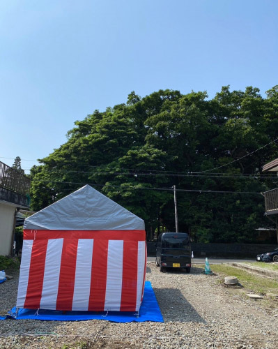 地鎮祭を終えて着工の準備を進める「巡り住む家」。