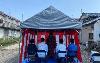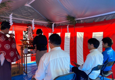 工事の準備が整った敷地で地鎮祭を執り行います。